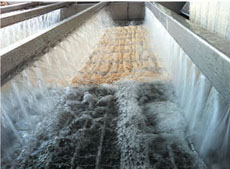 可調(diào)式的雙分絲展幅系統(tǒng),配合條幅平移紅外對(duì)中器,保證織物在低張力狀況下居中進(jìn)布,而不會(huì)產(chǎn)生拉升扭曲。 | 通過(guò)3-8分鐘堆置和大流量循環(huán)噴淋,使浮色和漿料充分膨化,動(dòng)態(tài)過(guò)濾系統(tǒng)將洗下的雜質(zhì)和毛羽過(guò)濾出,大大提高水的重復(fù)利用率。 | 布面包覆在沖孔的轉(zhuǎn)鼓上,被6支水刀進(jìn)行穿透式水洗,效率高,無(wú)損傷,水洗壓力可調(diào),配有獨(dú)立過(guò)濾系統(tǒng),以提高水的重復(fù)利用。 |
